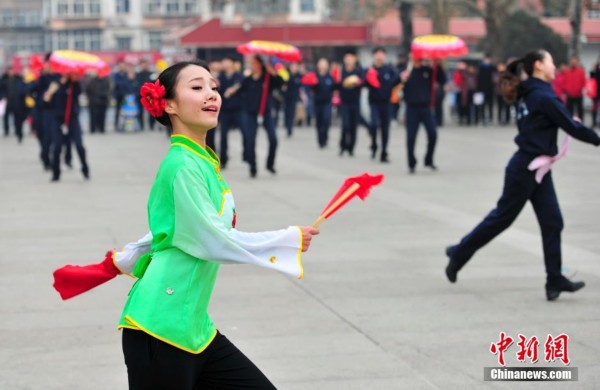 12月9日,在濟南的山東師范大學東方紅廣場上,該校舞蹈系應屆畢業生扭動身姿“快閃”鼓子秧歌,拉開畢業匯報展演序幕。 中新社發 張勇 攝