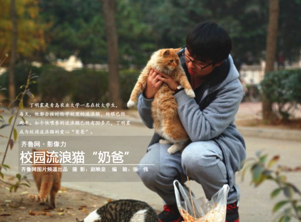 青島大學(xué)生喂養(yǎng)校園流浪貓 被贊愛(ài)心“奶爸”
