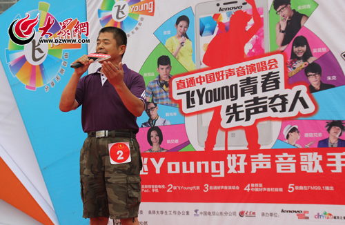 飛Young好聲音歌手大賽暨山東省第三屆網絡歌手大賽濱州站海選現場,59歲的何英杰憑借一首《人間第一情》贏得了熱烈的掌聲,臺下時不時傳來“姥爺加油,姥爺加油”的吶喊聲,原來是何英杰的外孫在臺下加油吶喊。