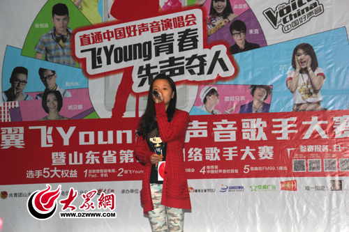 本次活動(dòng)由共青團(tuán)山東省委、山東電信、大眾網(wǎng)聯(lián)合主辦,中國好聲音明星學(xué)員趙晗、城市之音資深DJ安可、2013年飛young校園好聲音季軍張益作為評(píng)委導(dǎo)師親臨現(xiàn)場。比賽當(dāng)日,進(jìn)過激烈的海選,共有30多位選手進(jìn)入復(fù)賽。比賽現(xiàn)場,既有耳熟能詳?shù)摹豆廨x歲月》等經(jīng)典歌曲的演繹,也有《泡沫》等流行歌曲的精彩獻(xiàn)唱,30多名選手拿出看家本領(lǐng),爭奪泰安&萊蕪賽區(qū)的前三名。最終吳潔憑借一首《漂洋過海來看你》,獲得冠軍,甜美的嗓音給現(xiàn)場觀眾留下深刻印象;張兆昆憑借一首《不再猶豫》獲得亞軍;鐘婭冬獲得季軍。