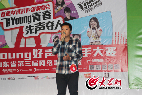 本次活動由共青團(tuán)山東省委、山東電信、大眾網(wǎng)聯(lián)合主辦,中國好聲音明星學(xué)員趙晗、城市之音資深DJ安可、2013年飛young校園好聲音季軍張益作為評委導(dǎo)師親臨現(xiàn)場。比賽當(dāng)日,進(jìn)過激烈的海選,共有30多位選手進(jìn)入復(fù)賽。比賽現(xiàn)場,既有耳熟能詳?shù)摹豆廨x歲月》等經(jīng)典歌曲的演繹,也有《泡沫》等流行歌曲的精彩獻(xiàn)唱,30多名選手拿出看家本領(lǐng),爭奪泰安&萊蕪賽區(qū)的前三名。最終吳潔憑借一首《漂洋過海來看你》,獲得冠軍,甜美的嗓音給現(xiàn)場觀眾留下深刻印象;張兆昆憑借一首《不再猶豫》獲得亞軍;鐘婭冬獲得季軍。