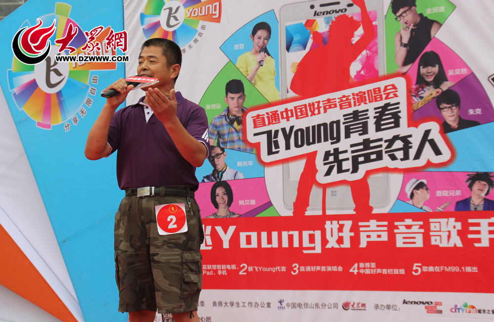 本次活動由共青團山東省委、山東電信、大眾網聯合主辦,好聲音學員王洪迪、城市之音資深DJ安可、2013年飛young校園好聲音前三名之一張益作為評委導師親臨現場。濱州的早晨雨一直下,但絲毫沒有影響選手的熱情,活動由上午10時正式開始,截止下午5時30分近百人報名參賽,年紀最小的只有6周歲,最大的已經59歲。
