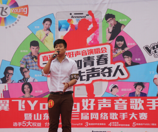 大眾網濟南6月19日訊(記者 趙潔)6月15日,天翼飛young好聲音歌手大賽暨山東省第三屆網絡歌手大賽煙臺&威海站開賽,煙臺新世界百貨廣場上激情萬分,2013年飛young校園好聲音冠軍徐亞飛和中國好聲音明星學院單沖鋒的激情獻唱,引來眾多駐足。