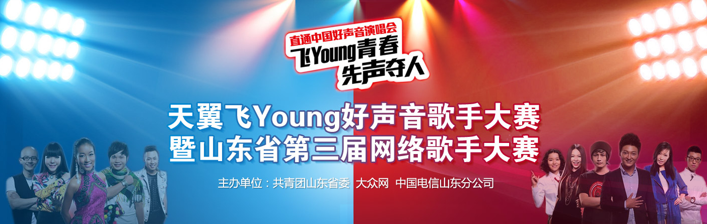 天翼飛young好聲音歌手大賽暨山東省第三屆網(wǎng)絡(luò)歌手大賽濟(jì)南站6月22日開(kāi)始,這是一場(chǎng)全體音樂(lè)愛(ài)好者的狂歡盛宴,這是一個(gè)盡情展示歌聲魅力的閃耀舞臺(tái)!飛young青春,先聲奪人,天翼飛young好聲音歌手大賽,你音樂(lè)夢(mèng)想的起點(diǎn)!