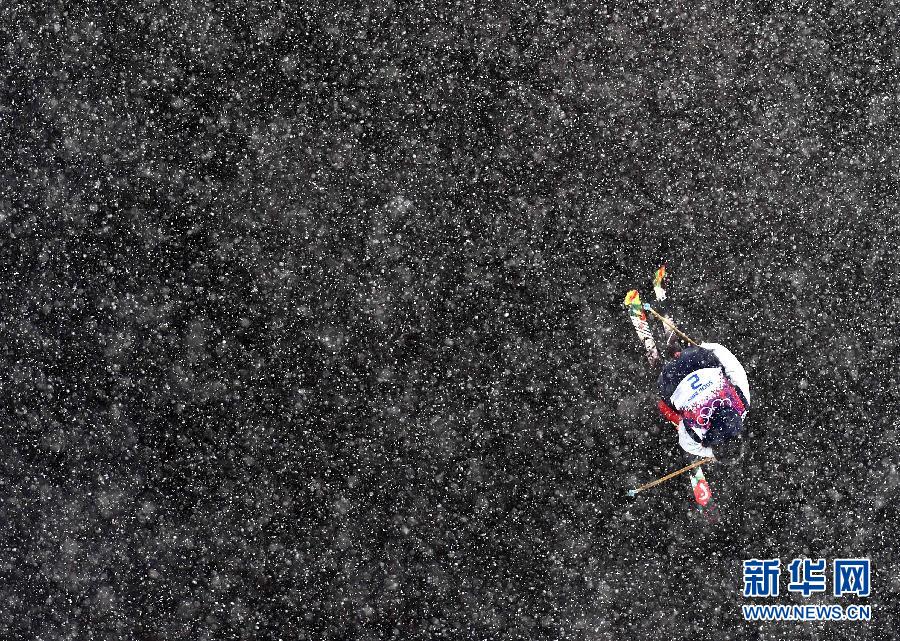 2月18日,美國(guó)選手布隆克在比賽中。當(dāng)日,2014索契冬奧會(huì)自由式滑雪男子U型場(chǎng)地技巧比賽舉行。 新華社記者李鋼攝