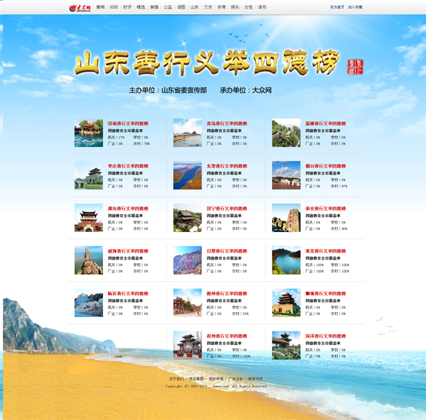 為進一步培育和踐行社會主義核心價值觀,落實中宣部和山東省委推廣善行義舉榜現場會會議精神,由山東省委宣傳部主辦、大眾網承建的“山東善行義舉四德榜”網上展示平臺日前開始試運行。