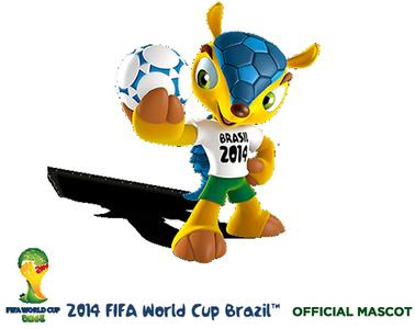 “福來哥”(Fuleco)是2014巴西世界杯的吉祥物,其原型為一只三色犰狳,是巴西的特有物種。犰狳(讀音:qiú yú),又稱“鎧鼠”,在感受到外部威脅時,犰狳會縮成一圈,用甲殼保護自己,此時形態同足球相似。設計人員將犰狳的形象卡通化,從而抽象出巴西世界杯的吉祥物。