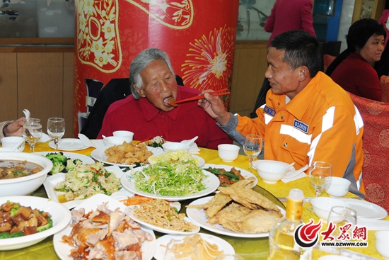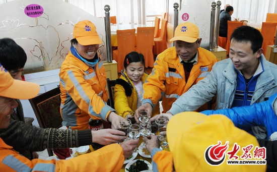 大眾網濟南1月27日訊(記者 劉明明 通訊員張昊宇 張曉翼)今天中午,來自歷下區城管局的13個環衛工家庭,在濟南軍區第二招待所吃了一頓豐盛的團圓飯。