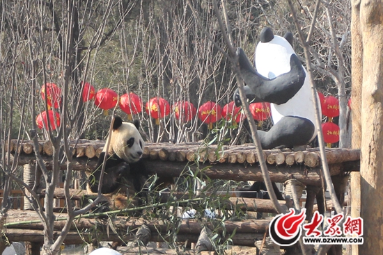 動物園的母熊貓叮叮來濟南一周年了。 大眾網(wǎng)記者 劉明明 攝