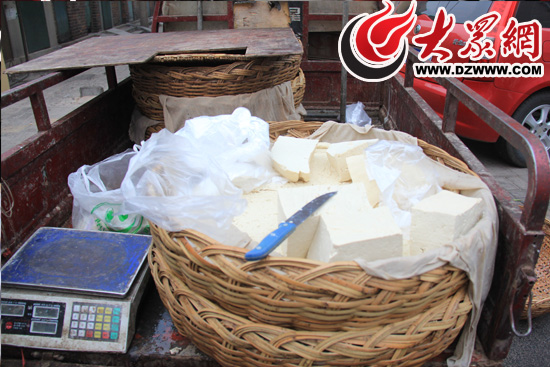 “昨天生意好嗎?”大眾網(wǎng)記者問李順昌。“年前這幾天生意確實很好。”李順昌說,臘月二十八賣了8筐,臘月二十九賣了10筐。一筐豆腐大約有70斤左右,10筐豆腐摞起來像小山一樣。