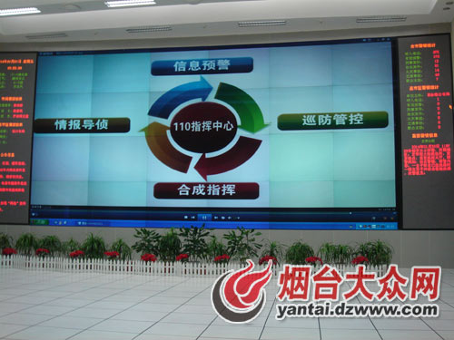 大年初一,當大眾網記者進入煙臺市110指揮中心時,被大廳正前方的一個60英寸的巨大顯示屏吸引,上面清晰完整地展示了110安保系統的概況。指揮中心趙主任詳細為記者講述了屏幕的作用:其中預警、巡防電子屏分別用于追蹤各區段的潛在隱情,以便預防犯罪和顯示警車巡邏情況,另外還有實時的可視電子屏,以便及時與市局、各縣市分局聯系,實現值班監督,同時還有重要路段和治安復雜區的監控鏡頭畫面,這個屏幕24小時不間斷顯示,確保時刻為解決各種警情,尤其大案要案、突發情況服務。