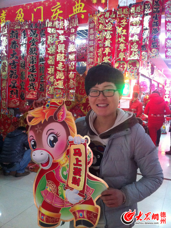 隨著馬年春節(jié)的臨近,德州市德百物流批發(fā)城、城隍廟市場(chǎng)等都在入口處顯眼的地方開(kāi)辟出一塊年貨區(qū),紅彤彤一片,專門(mén)銷售春聯(lián)、福字、窗花、門(mén)貼、中國(guó)結(jié)、紅燈籠等中國(guó)特色的年貨。