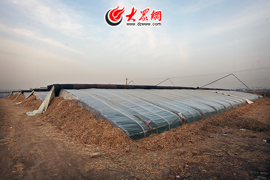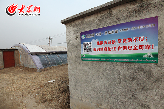 1月2日下午,大眾網記者來到柴家村準備采訪柴會龍。想找他并不難,在村北側一望無邊的韭菜地里,一眼就能夠看到一間顯眼的白色移動板房和一輛紅色的小轎車。在這連片的韭菜地中,有30多畝地被柴會龍一家承包了下來,并在2012年掛上了“惠龍韭園種植基地”的牌子。