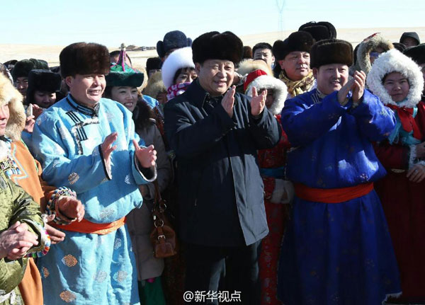 冬季那達慕活動上,習近平參加了“五畜祈福”儀式。他用無名指蘸上馬奶酒向外彈了三下,然后說,我借“五畜祈福”寓意,祝新年風調雨順,五谷豐登,草畜興旺。讓我們繼續(xù)弘揚鍥而不舍的精神,同心同德努力奮斗。祝祖國更加繁榮昌盛、各族人民更加幸福安康。