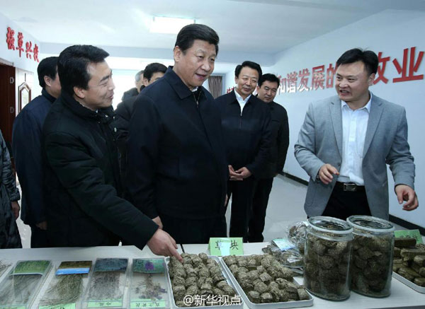習近平來到毛登牧場飼草產業(yè)基地。桌上擺放著各種草標本和加工的草塊、草顆粒。負責人拿起針茅草說:“這種草牛羊喜歡吃,但夏天長出倒刺尖,羊吃了易刺穿皮,羊皮就不值錢了,加工成草顆粒就沒問題。”總書記笑著說:“這可是牛馬羊愛吃的香餑餑啊。”