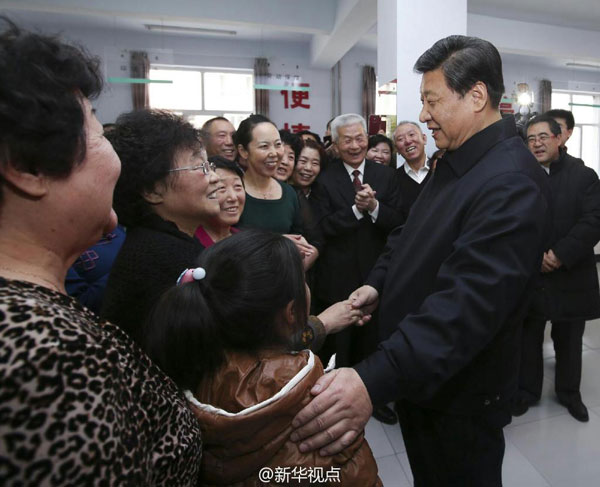 在錫林浩特市愛民社區(qū),習近平走進衛(wèi)生服務站、民惠超市、便民服務大廳,同工作人員和居民親切交談,了解社區(qū)關心低保戶、殘疾人及建設關愛型社區(qū)情況,對社區(qū)工作給予肯定。上車前,他叮囑社區(qū)負責人:“要把人民放在心中最高位置,全力為群眾排憂解難。”