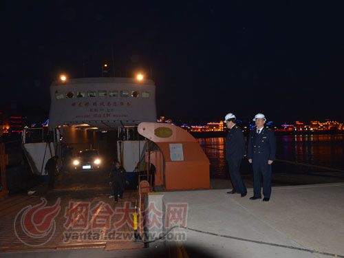 除夕下午5點50分,蓬萊到長島最后一班客船到港時,長島海事處值班人員正在現場迎侯,船都到港了,他們就放心了。