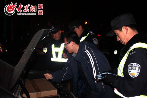 “您好,請出示證件!薄澳,請打開后備箱!边|河路與膠州路交叉路口,民警們正在認真地檢查每一輛過往車輛!霸绞沁^節,任務越艱巨!闭趫糖诘臇|營特警支隊特勤大隊教導員趙永峰告訴記者,從正月初一開始,由特警支隊牽頭,聯合交警、武警、派出所民警在東西城各設兩個點進行不定時不定點檢查。主要是檢查涉爆裝置、易燃易爆物品、管制刀具、槍支彈藥、;锲、涉毒物品以及酒后駕駛、沖卡闖崗等交通違法行為!爸灰鼙WC大家過個平安年,我們辛苦點又算什么……”,寒風中,趙永峰用略帶沙啞的嗓音詮釋著每個堅守崗位的民警心聲。