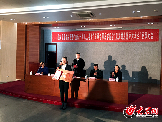 日前邢思睿榮獲“山東十大凡人善舉”和“見義勇為優秀大學生”稱號