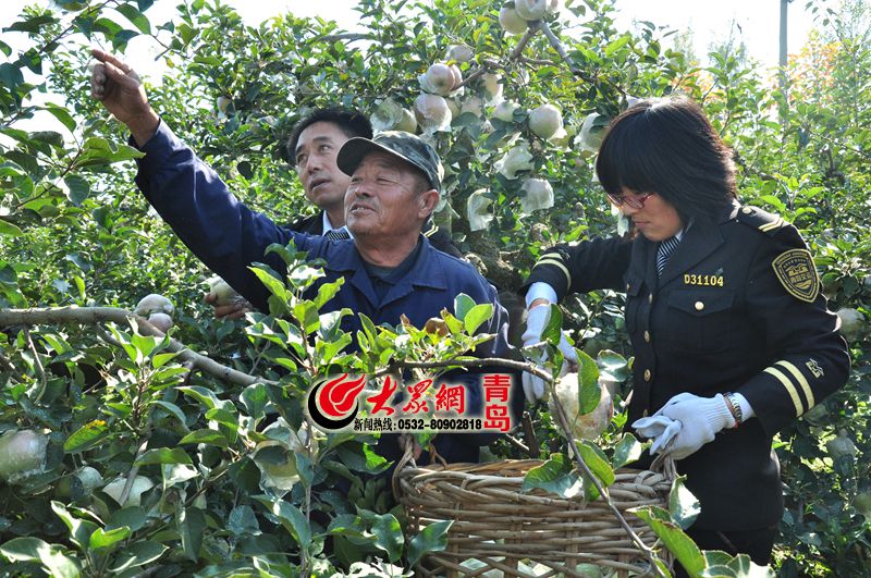志愿者幫韓大爺采摘蘋果并分類