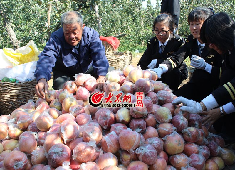 志愿者們幫韓大爺分裝蘋果