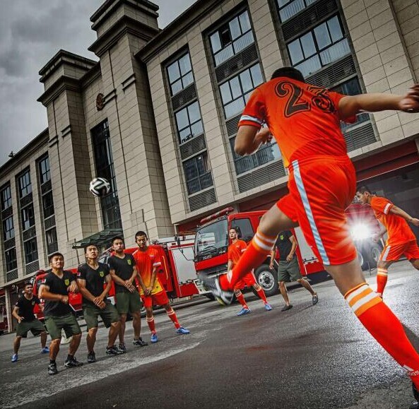 6月23日,重慶渝北區消防支隊發布一組消防官兵在“世界杯”期間拍攝的足球形象照。渝消防 攝