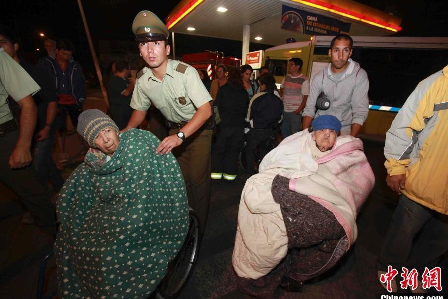 這次強震引發海嘯,預計在接下來數十小時內將陸續抵達美國、日本等國和地區。目前,除智利和秘魯保持海嘯預警之外,其他南美國家的預警和警戒都已經撤銷。圖為塔爾卡瓦諾城民眾緊急疏散。