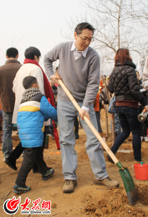 大眾報業集團黨委常委、副總編輯楊曉洲正在植樹。(記者 宋立鵬 攝)