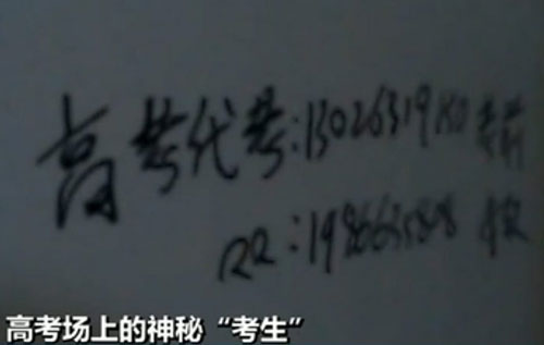 一名自稱李老師的人是組織替考者,他在武漢大學、武漢理工大學和中南財經政法大學等高校教學樓廁所里貼出招募高考槍手的小廣告。