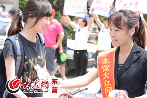“這些水您可以免費(fèi)拿去喝。”,“我可以給孩子拿支2B鉛筆嗎?”“當(dāng)然可以,這就是為高考的孩子們準(zhǔn)備的。”早上7點(diǎn)多,大眾網(wǎng)東營(yíng)拍客團(tuán)聯(lián)合東營(yíng)東亞原香小鎮(zhèn)共15人來到東營(yíng)市一中考點(diǎn)愛心助考。