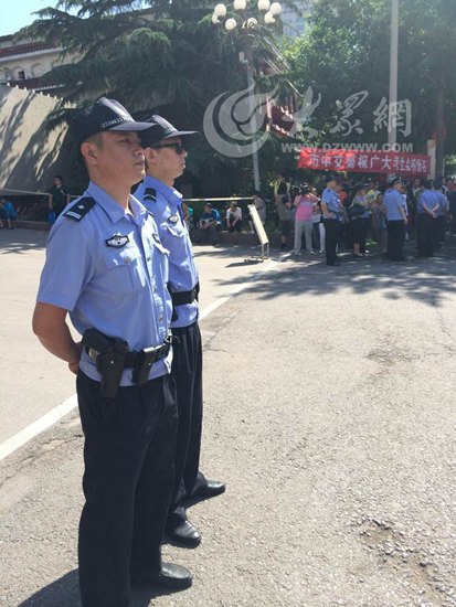 一大早,濟南市市中公安分局的公安干警就趕到了省實驗中學門口,為考生保駕。其中兩位配槍的公安蜀黍給考生和家長增添了不少安全感。其中一位干警配“79式”微型沖鋒槍,一位配手槍!大眾網記者了解到,今年幾乎所有考點都配槍執勤的公安,就是確保考生有個安全的考試環境!