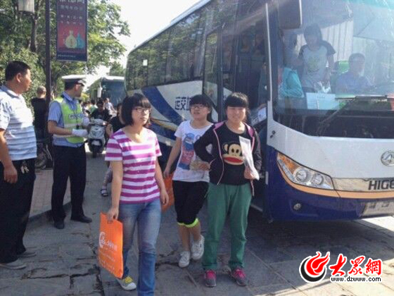 考生走下高考專用車