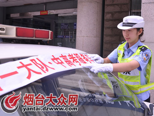 在交警一大隊,記者看到民警們正忙著給警車粘貼“交警一大隊中高考服務車”的標識,民警告訴記者,“所有粘貼‘中高考服務車’的警車都是高考專用車,在高考期間專門為考生服務,保證在考生需要幫助時招手即停,隨時為考生開道。”
