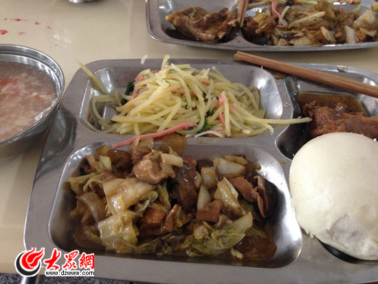 記者專門體驗了一下今天中午的高考餐,每人一塊醬排骨,香菇雞塊和炒三絲各一份,外加一碗番茄雞蛋湯,主食有饅頭和米飯可以選擇。葷素搭配合理,咸淡也很適中,分量也很足,完全可以吃飽。王經理向記者介紹,每天的高考餐都不一樣,考生如果不夠吃還可以繼續打飯。