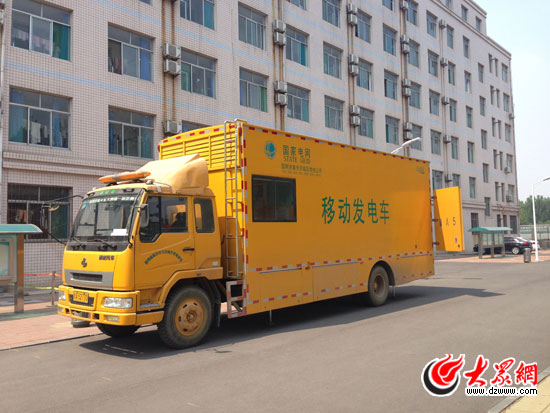 記者走出宿舍樓,發現樓外?恐惠v印有“國家電網”的巨大工作車。距工作人員介紹,這是一輛大功率發電車,如果出現突然停電的緊急情況,這輛車完全可以供應整個考點的照明系統。