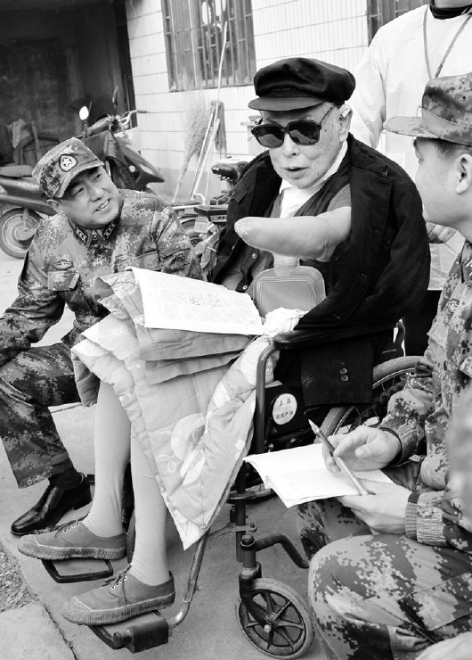 朱彥夫與淄博預(yù)備役工兵團(tuán)官兵暢談理想和信念。3月26日,朱彥夫官方微博開通,這位特殊材料制成的人、全國時(shí)代楷模,第一次成為網(wǎng)絡(luò)世界的“主角”。