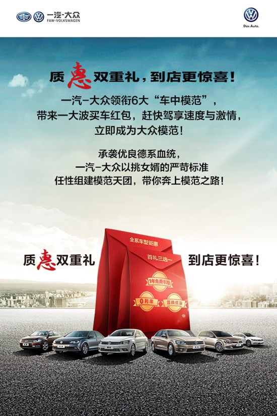 6月12日-14日,“壹生壹世 相約與你” ,濟南市民將在世茂國際廣場迎來2015年夏天最浪漫甜蜜的盛宴。一汽-大眾山東首佳汽車銷售服務有限公司收到大眾網的邀約參展,一汽-大眾全系六大車型、7萬元-30萬元左右的價格分布,讓您的甜蜜愛情生活一步到位。