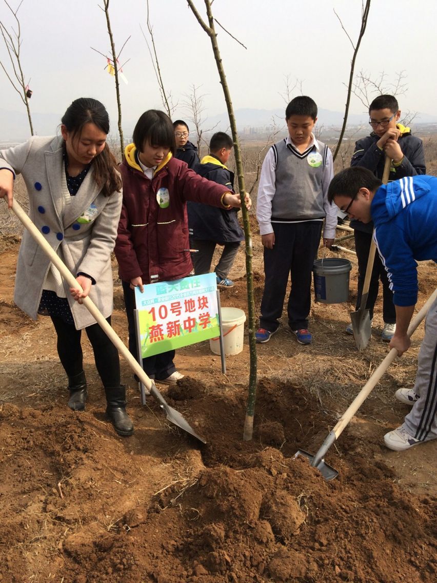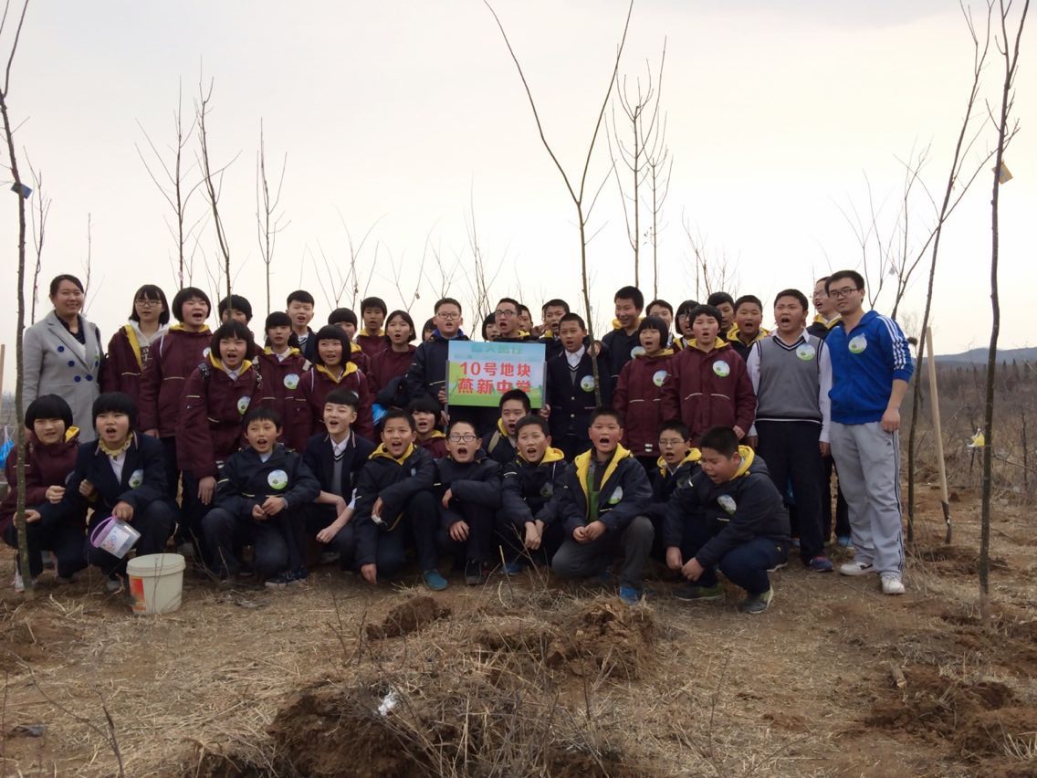植樹活動結束后,燕新中學七年級二班學生喊下“青春無畏,逐夢揚威”的班級口號