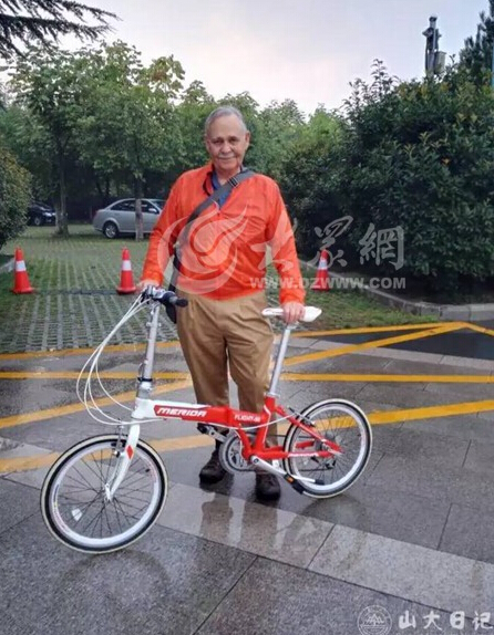 美國著名歷史學家鮑德威和濟南大叔借給他的自行車