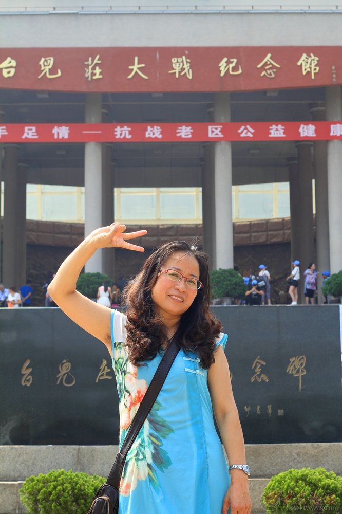 我是運河丫蛋兒,實名沈慶敏,響應大眾網(wǎng)“指尖護衛(wèi)大閱兵”的征集令,在大眾網(wǎng)棗莊拍客團老茂團長的帶領(lǐng)下,我在抗戰(zhàn)圣地臺兒莊為大閱兵激情點贊!臺兒莊是抗戰(zhàn)圣地,中華兒女曾用血肉長城在此奮勇抗擊日本侵掠者,取得了震驚中外的臺兒莊大捷。這是民族的揚威之地,光榮之地。作為一個文弱女子,每每瞻仰一處處抗戰(zhàn)圣跡,總有生未逢時的遺憾。小女子也有英雄膽——崇慕英雄,護衛(wèi)英雄,追隨英雄,想做英雄,花木蘭,趙一曼,江雪琴,劉胡蘭,慷慨悲歌千古傳,誰說女子不如男?!我在抗戰(zhàn)圣地臺兒莊,在臺兒莊大戰(zhàn)紀念館,在臺兒莊古城的抗戰(zhàn)圣跡前,為英雄的祖國,英雄的軍隊,英雄的人民,英雄的偉業(yè),激情點贊!