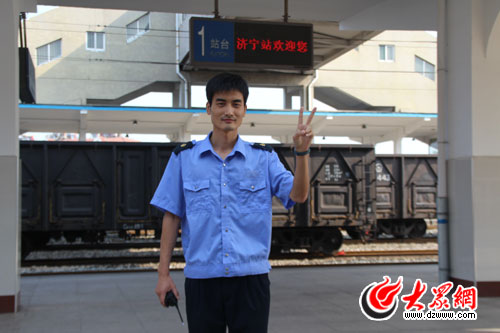 已步入而立之年的李鵬,曾是一名有著5年軍齡的老兵,多年的部隊生活,鑄就了他堅毅、果敢的性格。2001年李鵬從部隊退伍后成為了一名火車司機,去年被調到濟寧火車站從事客運員工作。在日常工作中他嚴格要求自己,始終保持軍人本色,牢記自己的使命,由于車站站臺是高站臺,確保旅客乘降安全是重中之重,站臺上遇重點旅客,李鵬總是一遍又一遍的提醒他們注意腳下安全。