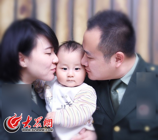來(lái)自山東萊蕪的現(xiàn)役軍人小蘇一家三口的合影,這也是小蘇存在手機(jī)里經(jīng)常拿出來(lái)看的一張照片。