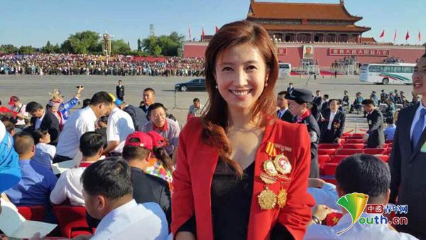 全國五一勞動獎?wù)芦@得者、全國青聯(lián)委員、著名主持人徐春妮在閱兵觀禮臺上。徐春妮供圖