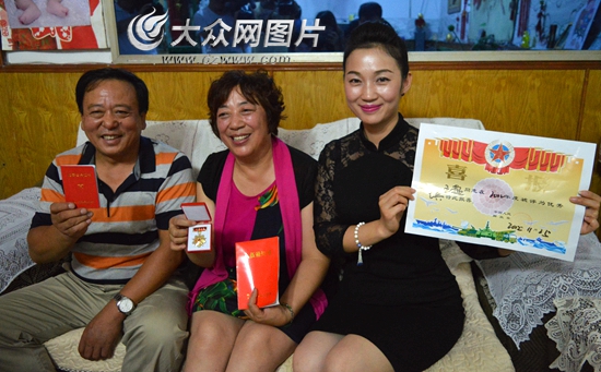 王超的父母和姐姐向大眾網記者展示王超獲得的榮譽。(記者 王宗陽 攝)