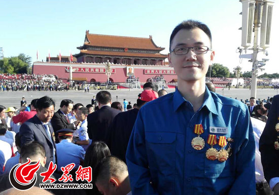大眾網(wǎng)濟(jì)南9月3日訊(記者 樊思思)“當(dāng)鮮紅的國旗升起,淚水模糊了我的視線,有生以來第一次感到血液在沸騰,我用最大的聲音唱著國歌,唱響心中的自豪!”3日中午,剛剛參加完大閱兵觀禮的王進(jìn)心潮澎湃,激動(dòng)萬分。作為大眾網(wǎng)“特約播報(bào)員”,王進(jìn)從閱兵現(xiàn)場發(fā)回了幾十條圖文信息,在舉行升旗儀式時(shí),他更表示自己用盡全身力氣高唱國歌,尚不能表達(dá)胸中激動(dòng)之萬一。今年36歲的王進(jìn)是國家電網(wǎng)山東省電力公司檢修公司班長,今年8月份,他成為了山東8位應(yīng)邀參觀閱兵式的全國勞模代表之一。王進(jìn)向大眾網(wǎng)記者感嘆,作為一名普通的電網(wǎng)工人,每次大閱兵他都是在電視機(jī)前觀看,從來沒想過有機(jī)會(huì)來到北京天安門。今天上午,當(dāng)王進(jìn)真的站在天安門廣場,站在國旗邊上,看著排列整齊的部隊(duì)方陣從眼前走過,他已經(jīng)找不到詞匯形容內(nèi)心的感受,“千言萬語一句話,我為祖國驕傲、自豪!”