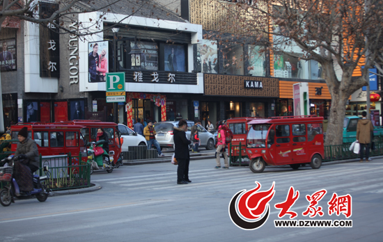 泉城路芙蓉街路口,記者隨手一拍20米范圍內就有5輛機動三輪走在非機動車道上。李強說“光處罰也沒法解決問題,這畢竟是他們的生計。以前我曾經讓他們在路口疏導交通來代替罰款,后來那幾個人確實不再隨便掉頭、亂變道了”。