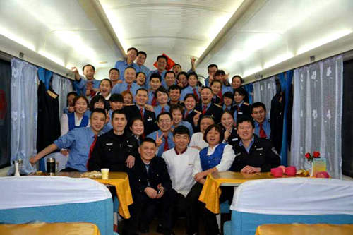 大年初二早上7點,經過39個多小時的行駛,K206抵達青島站,在忙完了所有的事情之后,封德軍和同事們在列車上拍了一張?zhí)厥獾娜腋。封德軍說,春晚上的全家福征集活動來不及參加了,但是這張全家福將是他心中最特殊的一張,“其實鐵路人回家過年是一件奢侈的事情,但是你看,團圓飯、全家福我們一樣也沒少,在我們心里,同事和家人一樣,旅客也是親人。這是屬于我們鐵路人獨有的過年方式!”