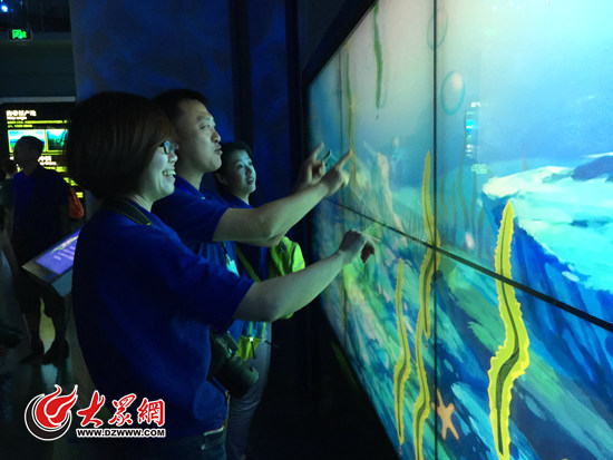 參加采訪活動(dòng)的媒體記者們?cè)谖挥谝粚拥暮Q笫称氛故攫^看到,這里集中展示了海洋食品產(chǎn)業(yè)和歷史文化的發(fā)展歷程。海參館、海帶館和13個(gè)食品企業(yè)特展區(qū)、銷(xiāo)售區(qū)讓參觀者在了解學(xué)習(xí)海洋知識(shí)的同時(shí),還可以實(shí)地品嘗榮成特色海洋食品。二樓的海洋科技館以海洋科普教育為主題,共設(shè)有60個(gè)海洋知識(shí)點(diǎn),6個(gè)重點(diǎn)展項(xiàng)和1個(gè)亮點(diǎn)展項(xiàng)系統(tǒng)展示了海洋自然、海洋開(kāi)發(fā)利用和海洋環(huán)境保護(hù)等知識(shí)體系。通過(guò)弧幕影院、互動(dòng)影像、競(jìng)技游戲以及大型滑動(dòng)式裸眼3D影院等先進(jìn)的多媒體技術(shù)手段,參觀者如同身臨其境,寓教于樂(lè)。