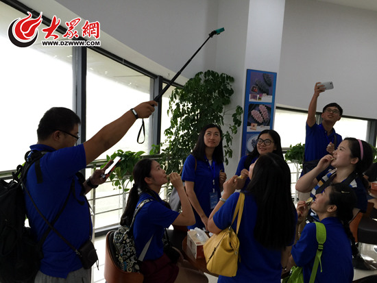 采訪團(tuán)記者用上了拍照“神器”。記者 馬俊驥 攝