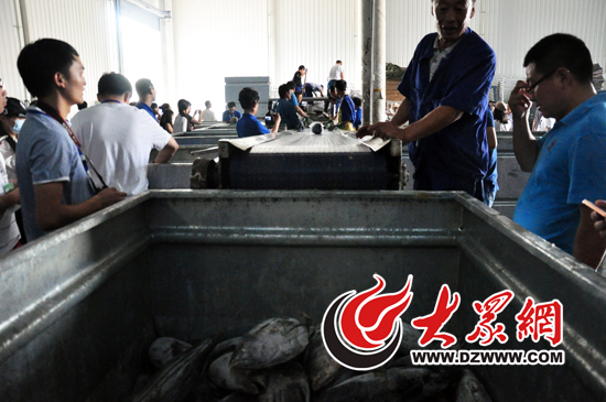 大眾網榮成8月16日訊 (記者 王曉青) 一條金槍魚從深海捕撈出來到變成美味的生魚片、金槍魚罐頭要經過怎樣的旅程?8月16日,“海上糧倉·全國主流網絡媒體榮成海洋行”媒體團來到山東藍潤水產有限公司為您揭秘金槍魚的奇妙之旅。